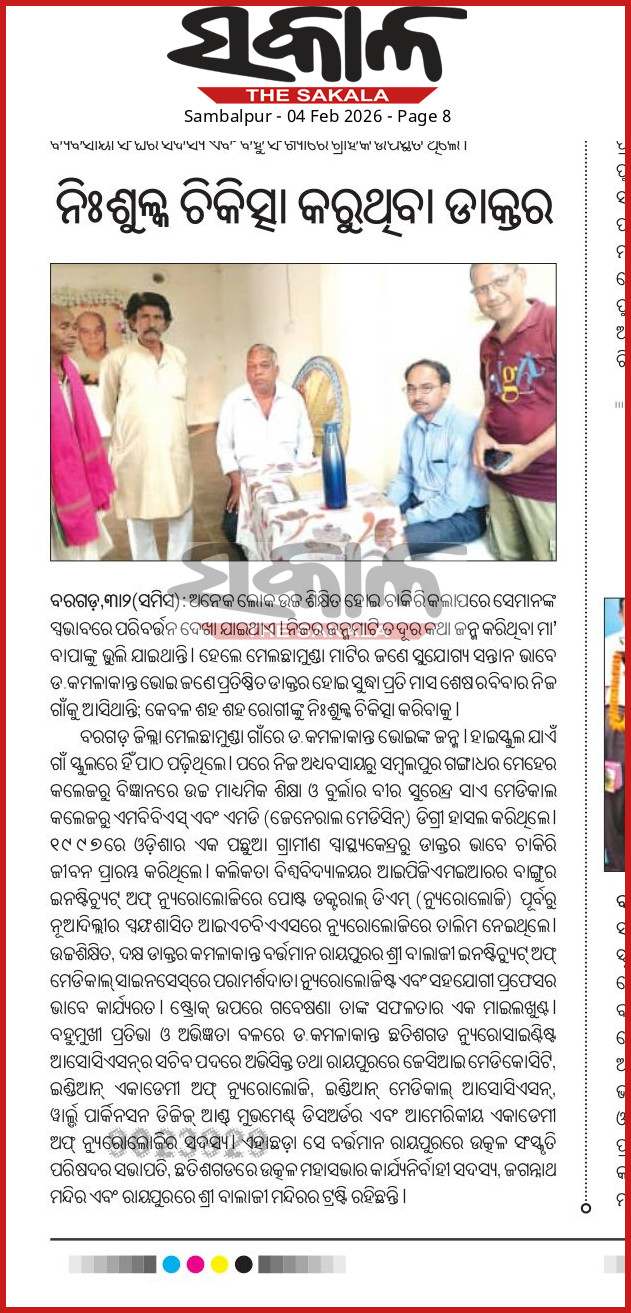 He had served in backward rural health centre in Odisha(1997). He also trained in Neurology at autonomous IHBAS(2001-2003), New Delhi prior to his postdoctoral DM(Neurology,2006) at Bangur Institute of Neurology, IPGMER, University of Calcutta. He joined same IHBAS for a short period prior to practicing at MMI(2006-2008, now NH MMI), Raipur. Currently at Shri Balaji Institute of Medical Sciences, Raipur(since 2009). His mother tongue is Odia, also well conversant in Hindi, Bengali,Koshali and English.